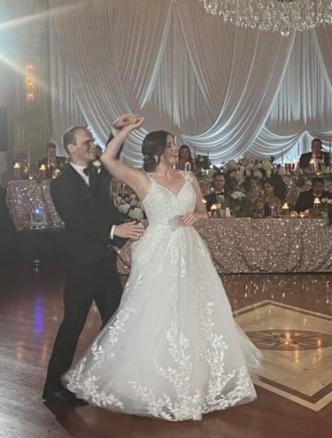 "We thoroughly enjoyed our dance lessons with Matt for our wedding dance! In fact, in the midst of the stresses of wedding planning, those lessons were a breath of fresh air. The fact that he was so invested in our dance through his experience, thoughtfulness, and attention to detail made all the difference. Not only that, but we have received nothing but compliments on our first dance!”
